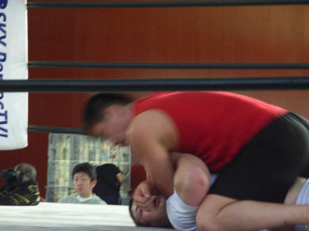 で、席に戻ったらリング上では崔と練習生が熱いスパーリング。