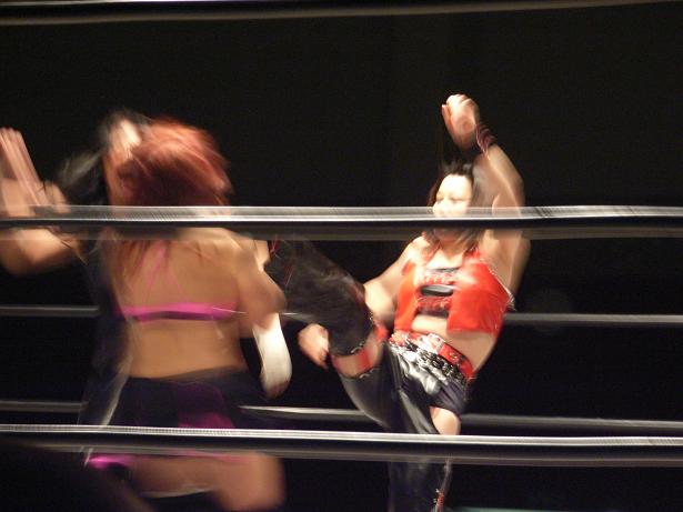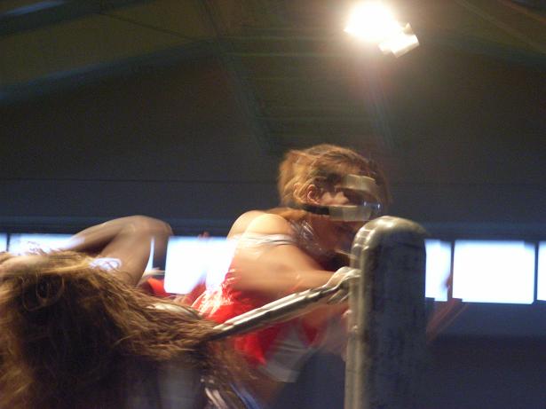 そんな感じで試合は場外で高いところに登った木村がダイブをかましたのに同士討ちになったりとか、Hikaruのフェイスガードが取れたりとか、たいようちゃんがアメコンの攻撃をダッキングでかわしまくったりとか色々あったが、最後はHikaruがつかまり、メリッサのバーティブレイカーで3カウント。