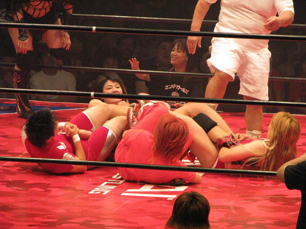 文子がアジャを倒したAPクロスで里村から勝利!!