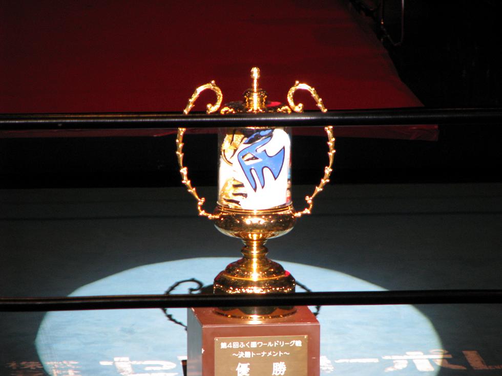 リングには優勝トロフィーが飾られていた。