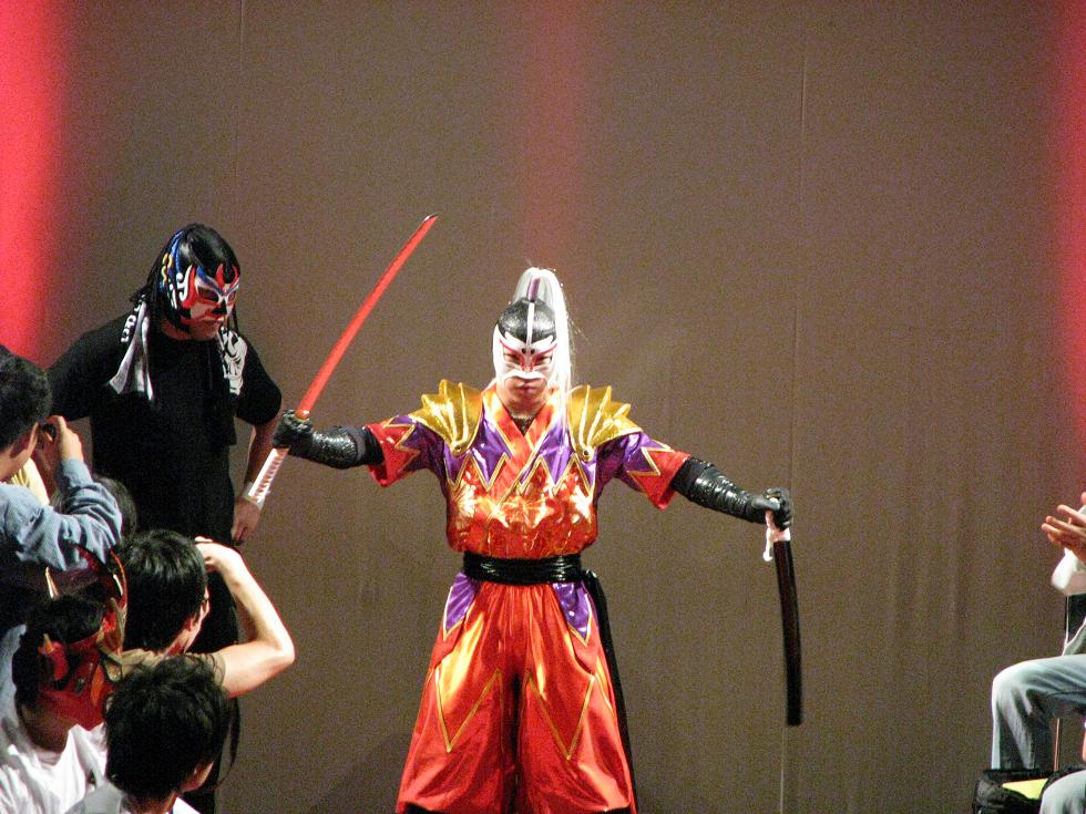サスケ会長を伴い花道に現れ、刀を抜いたかと思うと