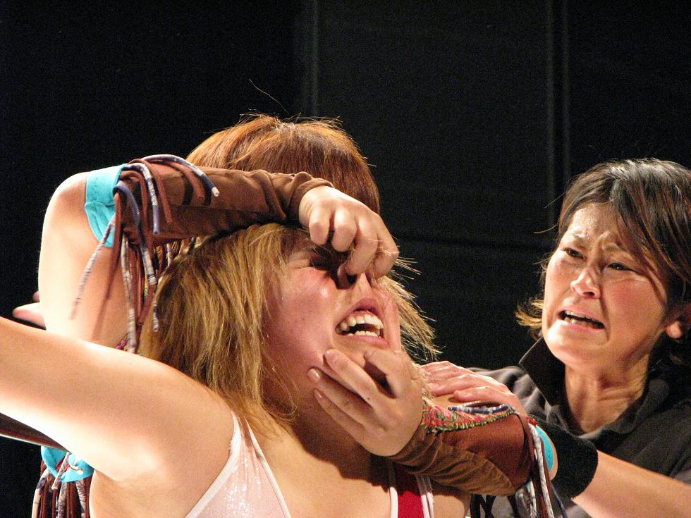 倉垣を担ぎ上げてショルダーバスター、連続ギロチンドロップ、ダイビングギロチンドロップと色々と見せ場は会ったものの、やっぱり倉垣のパワーには勝てない。
