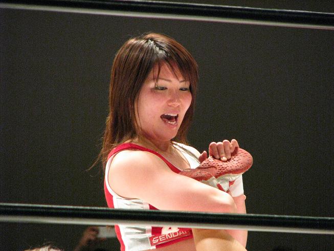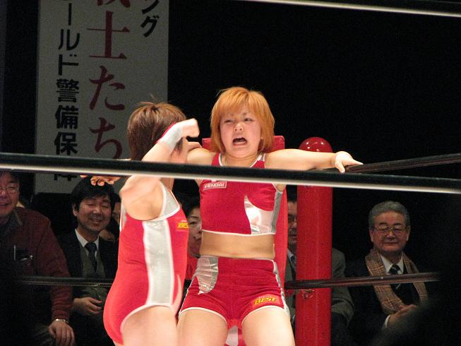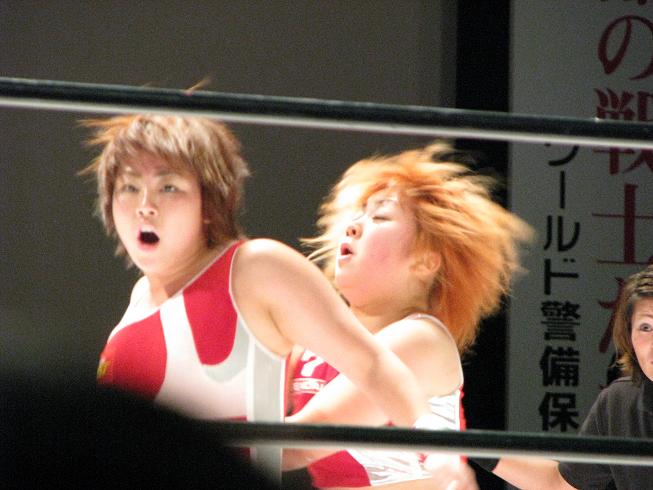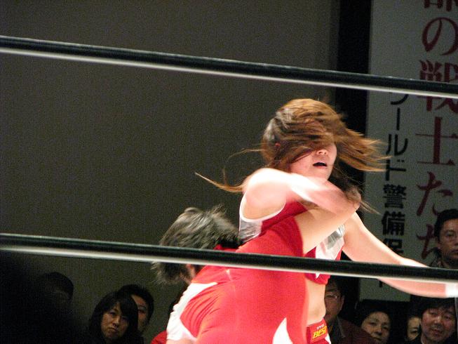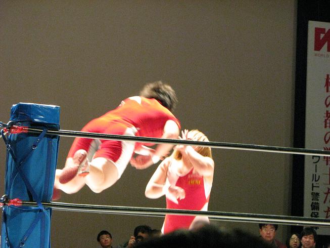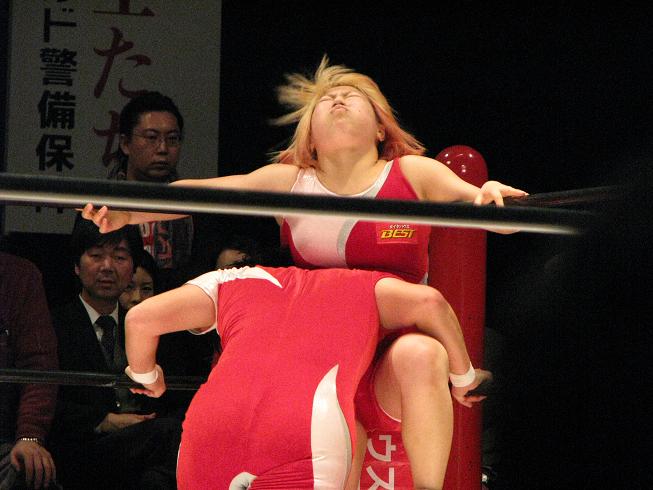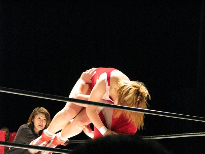試合は奥田が押してた感じだったが、奥田が試合を決めるべく狙ったジャーマンのクラッチを切って脇固めという渋い決まり手で幸子の勝利。