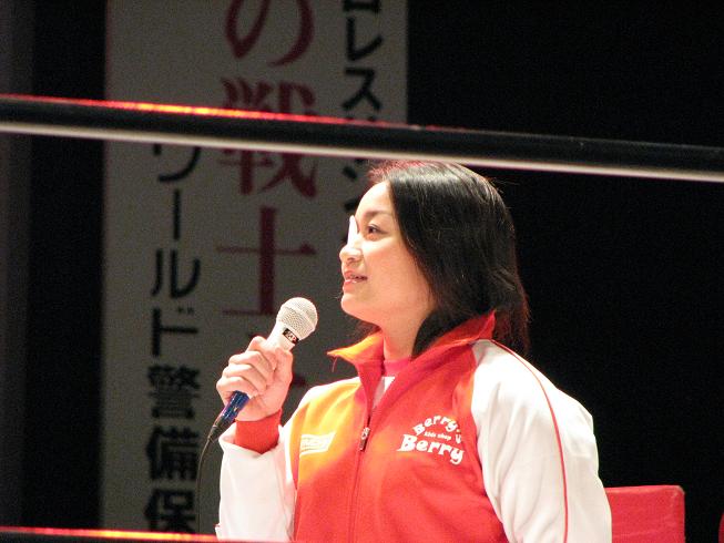 ちなみに、このコーナーで福袋のあたりを引いた人たちが里村とリング上で2ショット写真を取ったり、メインスポンサーのタイヤハウスBESTから高校生以下の観客へのお年玉プレゼント、里村とのじゃんけん大会勝者10人に年間パス(立ち見のみ)が送られた。