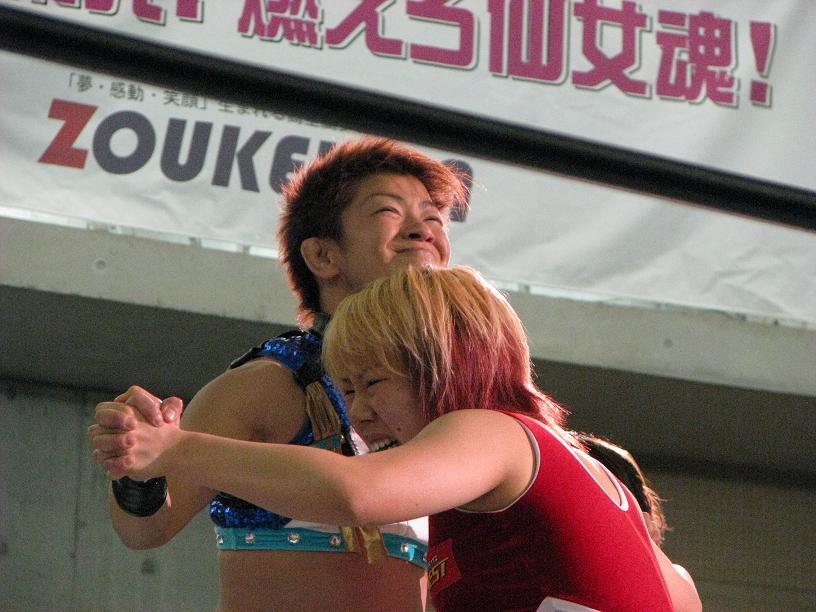 試合は天野のジャーマンで決着がついたが、天野は試合後に退場するチサコを呼び止め何か発言してチサコを悔しがらせるあたりがOZなのかな、なんて。