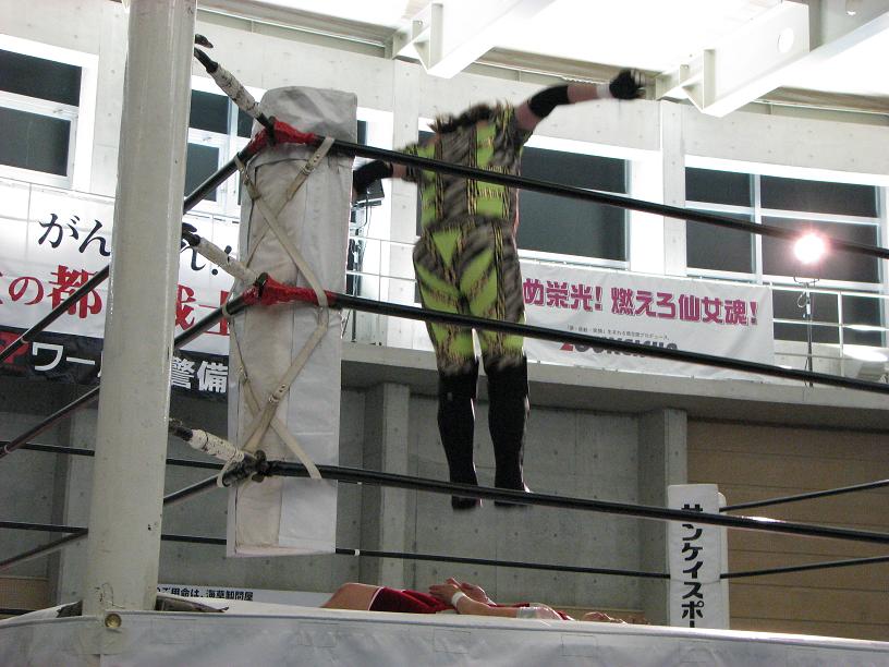 得意技のダイイングレッグドロップ、イチジクなどは出せたが、関西は全く意に介さず。