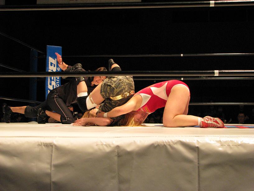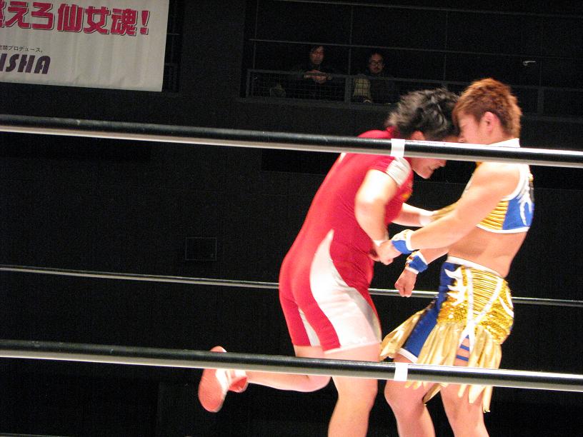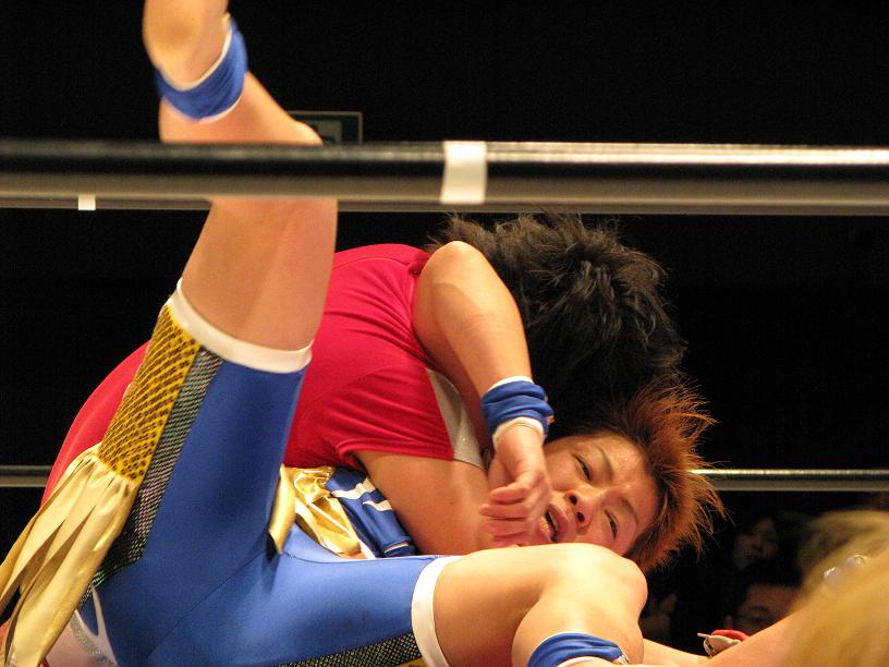 悲恋がアンクルを仕掛けて一度相手がロープ際によるも悲恋が中央に引っ張ったりするシーンは本当に盛り上がった。