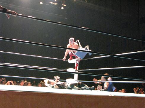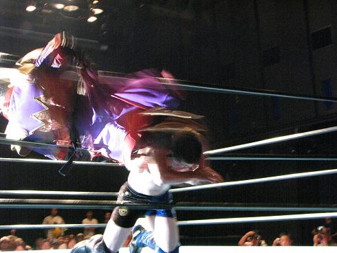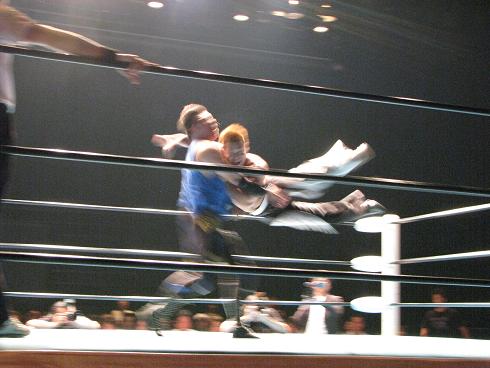 リングサイドから売店前までスローされる義経とか、観客から奪ったペットボトルのお茶を野橋にぶっ掛けて馬鹿にする秀(あるいは恵)とか、かなりの暴れっぷりでした。