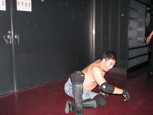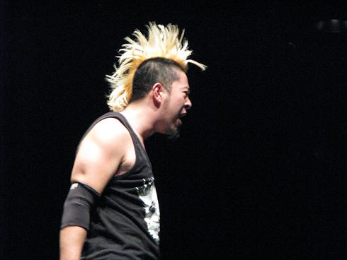 レザーフェイスばりの沼澤の入場パフォーマンスに会場にいる人間が結構びびる。