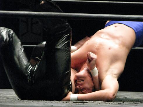 終盤は菅原の左膝への集中砲火で完全に劣勢になり、最後は足4の字固めで石川敗北。