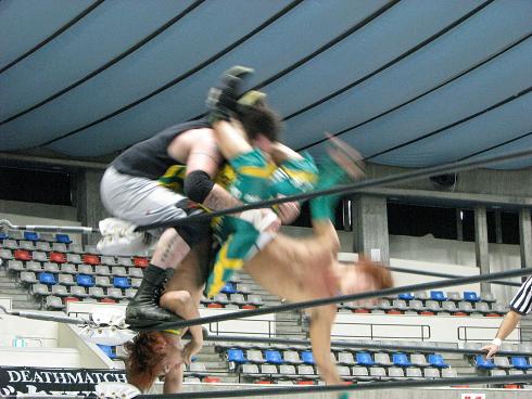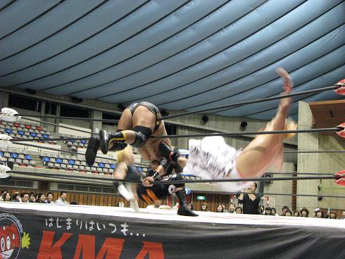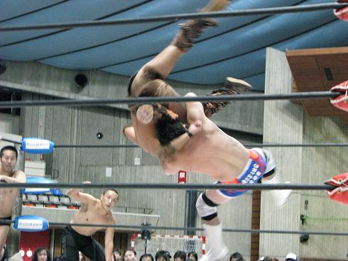 MASADA以外はスピードを生かしたファイトで会場を盛り上げ、MASADAは付け焼刃のルチャ技術とパワーで盛り上げる。