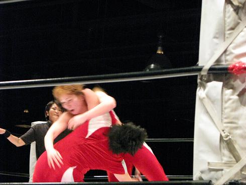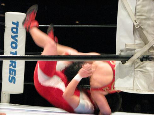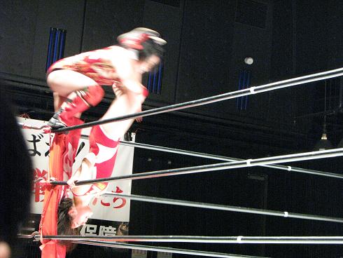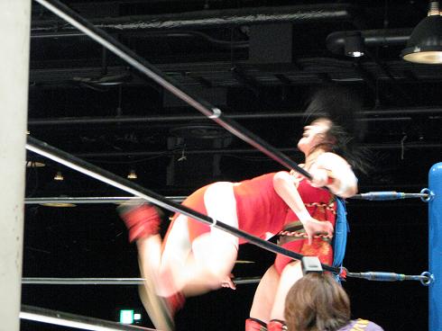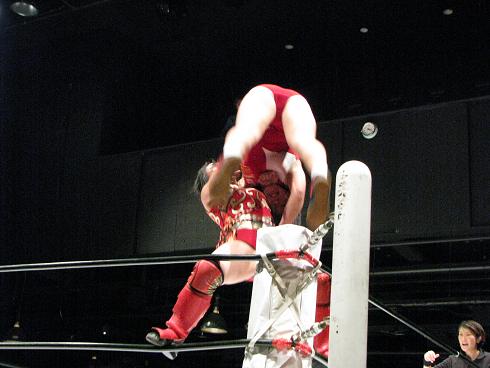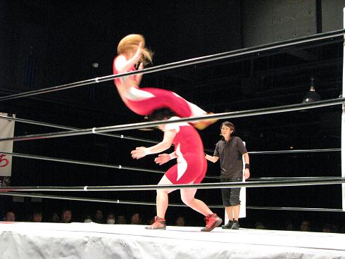 そういえば、試合中に悲恋がミサイルキックを放ったんだけど、高く飛びすぎて足が当たらずにケツから瑞浪に落ちる形になった瞬間はちょっと焦った。