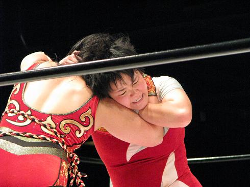 ゴングと同時に水波が突っ込んでいってパワーファイトを見せれば悲恋はラフファイトで流れを止める。