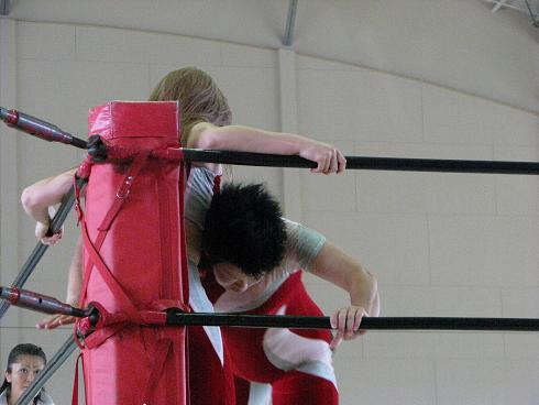 対するエスイはアトミックドロップ、ジャイアント・スウィング、モンゴリアン・チョップなどを見せる。