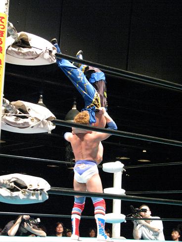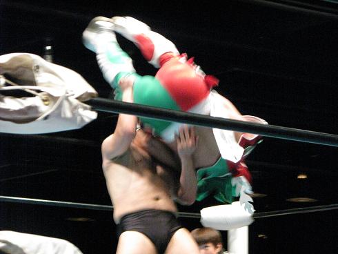 最前列だったので、ウルティモ・ドラゴンと触れ合えてラッキー(笑)