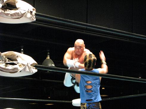 佐藤兄弟に混ざって沼二郎先生に水をぶっ掛けたり、沼二郎先生に思いっきりストンピングしていったりと、順応性高いと思いました。
