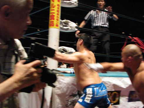 しょっぱなからぶつかっていき、いきなり場外乱闘。