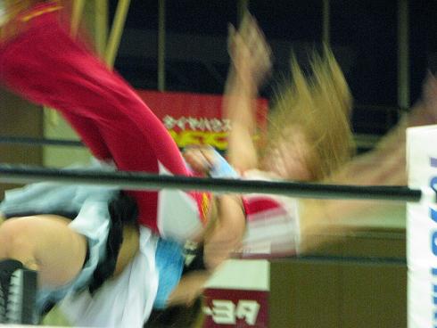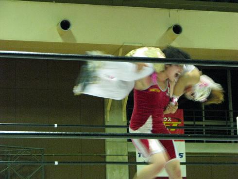 大畠のエルボーと悲恋のフロントキック合戦を経て、大畠が投げっぱなしジャーマンを決めるも3カウントならず。
