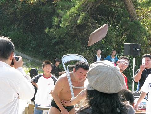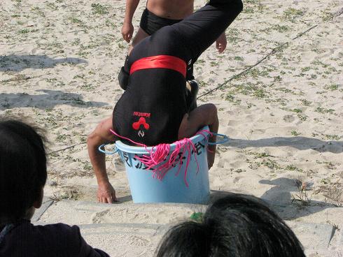で、サスケさんと沼二郎先生は会場を所狭しと動き回り、海でずぶ濡れになりながらも戦う。