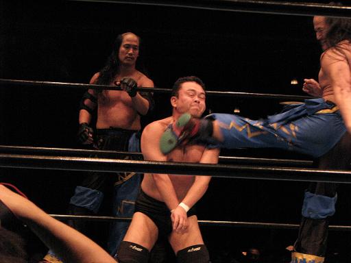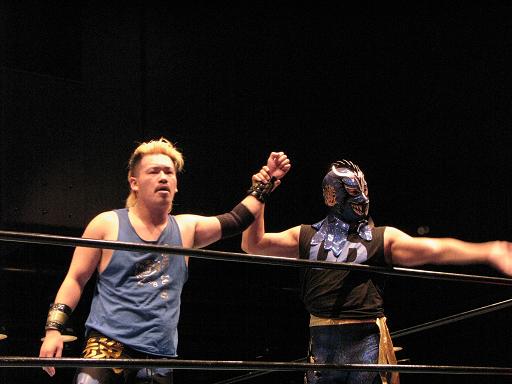 4.佐藤秀&佐藤恵&ウルティモ・ドラゴン VS 気仙沼二郎&新崎人生&ザ・グレート・サスケ