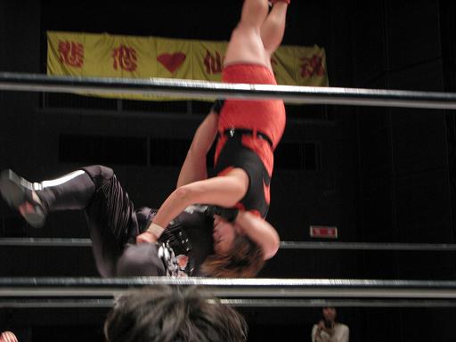 途中、都の『都いきま~す』という掛け声からのコーナーを利用してのアームドラッグ、その後に『元気もりもり』の掛け声でポーズ、で更にイライラした俺。