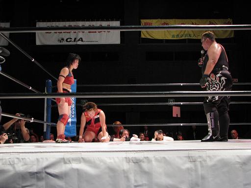 パイプ椅子を出したり、レフェリーを引きつけてKAORUの毒霧をサポートしたり巧い具合に試合に介入してた。