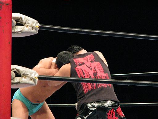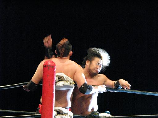 対する日本人タッグも体格差に苦しむものの、善戦。