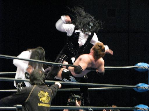んで、最終的に正規軍タッグが逆転し、船木を諏訪魔のラスト・ライドからの浜のランニング・ボディ・プレスで葬る。