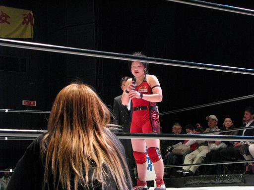 試合後、花月がマイクを掴み悲恋に対して宣戦布告。