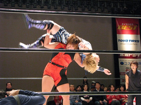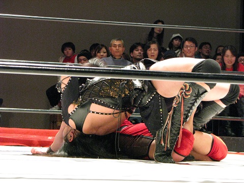 日本の女子プロレス界のトップマスクウーマンのタッグと十文字姉妹の対戦。