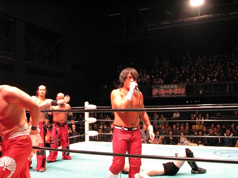 ちょっと笑いが起きるものの、周りがしっかりサポートして悪いヒールのまま退場。