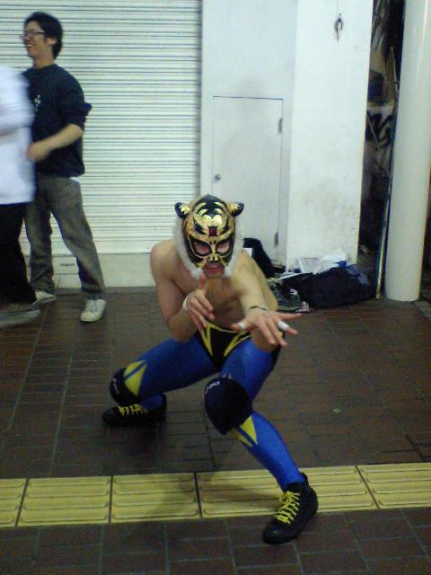 路上でエアープロレスをするタイガーマスクを発見!!(笑)