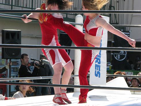 さて、そんな感じでストロングスタイルという蝶野のモノマネで有名な糸賀がやってるコンビとどこかのコンビがプロレスごっこ。