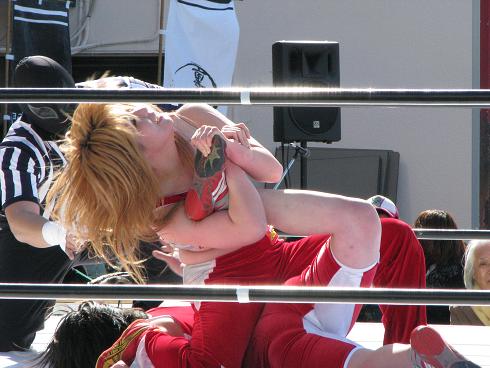 悲恋が石野の見せ場(スピアーとかエアプレーンスピンからのバックフリップとか)を作りつつも、最後は逆片エビ固めとアンクルの複合技で勝利。