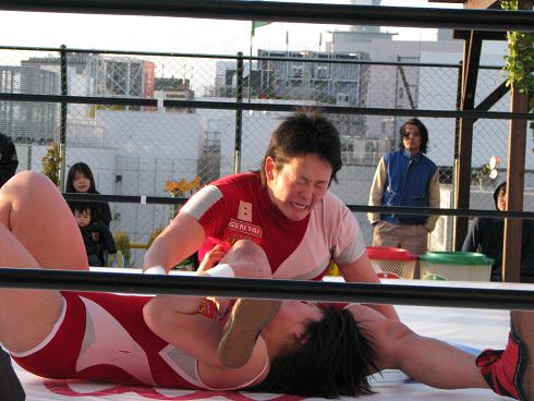 悲恋ってちょっとヒール入ってたりしてて仙女だと異色なんだけど、技を受けすぎたりする所は里村そっくりだよ(笑)