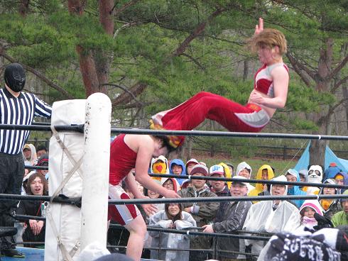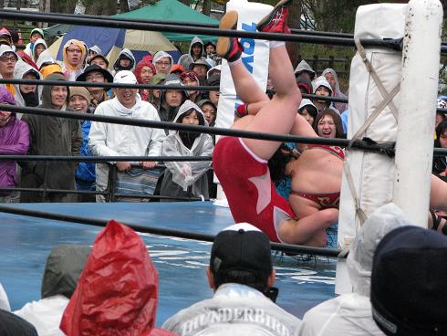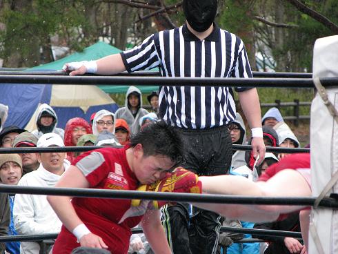 で、試合は大雨の中、ロープワークが満足に出来なくても熱い試合になりました。